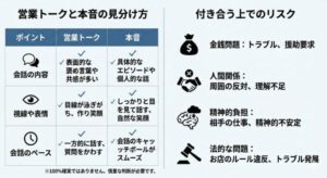 | ポイント | 営業トーク | 本音 |