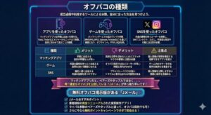主な種類としては、アプリ、ゲーム、SNSなどを利用したものがあげられます!