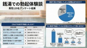 この章では、男性120名を対象に実施した独自のアンケート調査から、銭湯での勃起体験の実態や、周囲の人がそれをどう見ているのか、リアルな声をお届けします。