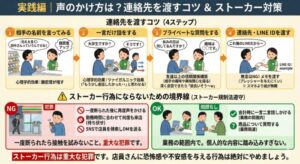 ナンパ行為を行う前に、必ず確認し、法律に触れる行為は絶対に避けましょう。