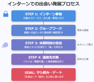 ここでは、実際にどのようにしてただのインターン仲間から、個人的な関係へとステップアップしていくのか、その具体的なプロセスを解説します。